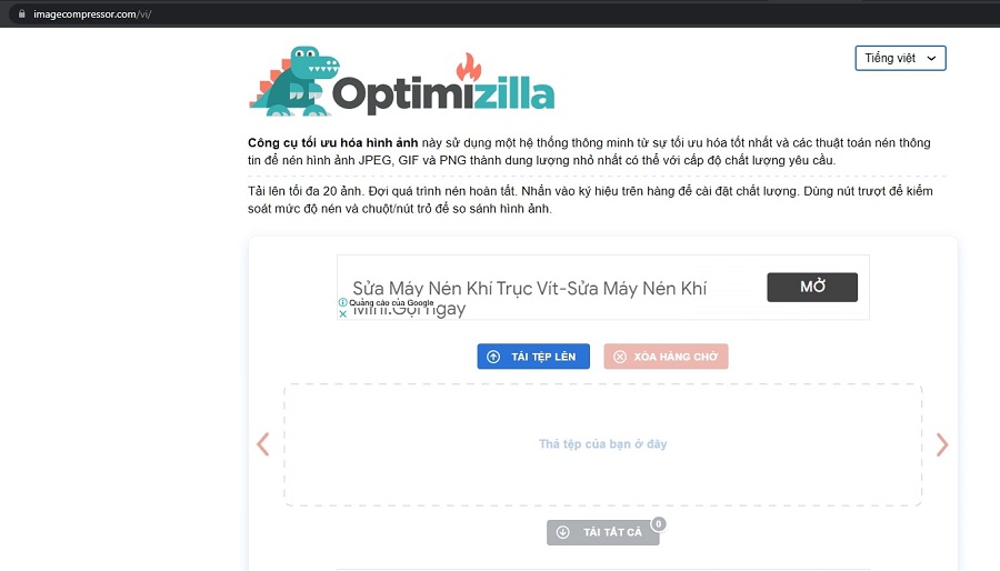 Bạn chỉ cần truy cập vào đường link bên dưới, tải ảnh lên, click vào nút nén ảnh, sau đó tải ảnh đã được nén xuống máy tính. Optimizilla là công cụ nén ảnh trực tuyến hàng đầu với nhiều ưu điểm tuyệt vời.